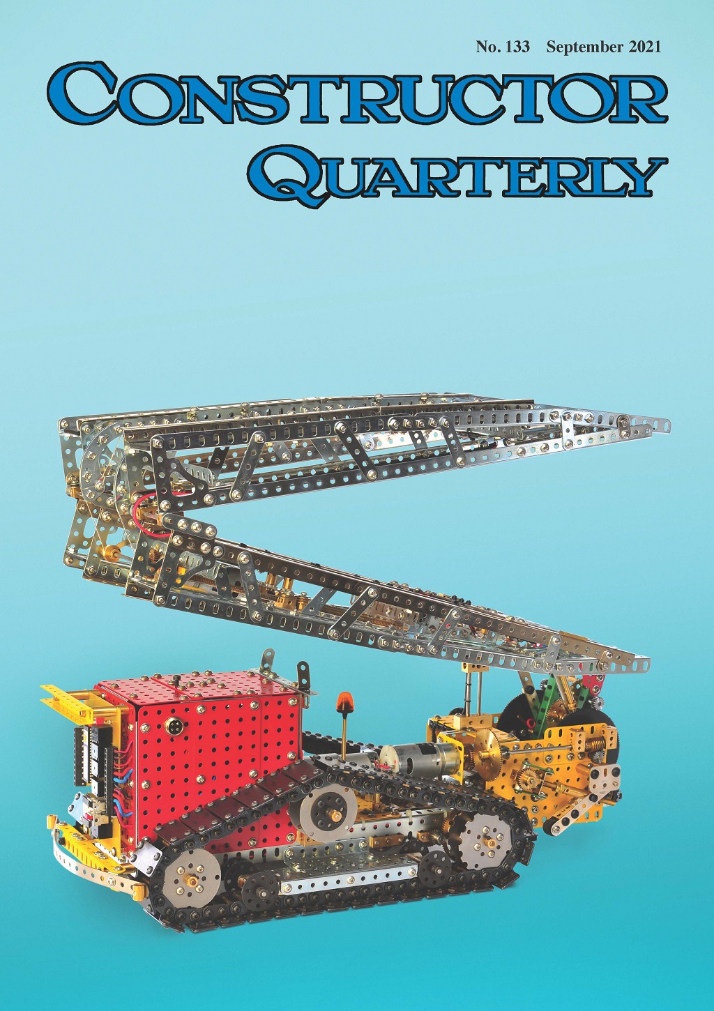 The Eagle Transporter; The Giant Block-setting Crane as a partwork model; Sir Malcolm Campbell’s Blue Bird; An indispensable dispenser!; 1903 Mercedes Roadster; The Cabin Monoplane in blue and gold; Vintage Atelier; Armoured vehicle-launched bridge; Meccano Lighting Sets 1934–41; Meccano Crystal Sets and the early years of the BBC; Corliss twin-cylinder steam engine; Doctor Who’s K-9