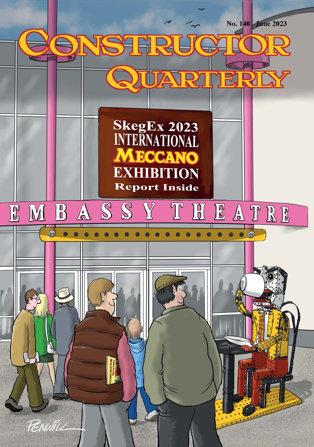 Automaton coffee drinker; WWII vehicles in old Meccano: Autocar U7144-T 4×4 truck; Geoff Wright – 1930–2023 (a tribute); The Pinyon Blocksetter; An audio amplifier for the Meccano Radio; (Dr.) String Theory; SkegEx 2023 report; Vintage Atelier: Portrait Gallery (V); A bus on road and rail; Meccablock penny-farthing; Entrancing ePIcyclics!; A Lanz Bulldog Tractor.